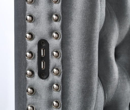 United FurnitureB546 Gray Velvet King Bed With Bluetooth Speaker-UsbDimension: Length 98 x Width 108.5 x Height 55 B546 Gray Velvet Queen Bed With Bluetooth Speake...